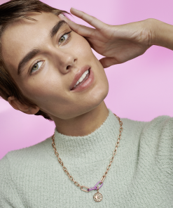 Special features: two openable connectors in front each with grooved lines on the sides following its shape and polished on the in- and outside; 12 links between each connector; length of necklace can be adjusted from 50cm to 40cm by removing links between connectors and become an optimal choker necklace; the carabiner clasp and the openable connectors open inwards with spring back function; logo on two sides of the carabiner clasp. Styling note: one set of four interlocking links corresponds to the length of a regular double link and a styling link; exchange connectors and links with the same length alternatives to keep the length of the necklace 1:1; you can style medallions with openable top parts on both links and connectors; style mini dangles with closed top parts on openable connectors only; for a custom look exchange the two connectors with other connectors or the links with other links of the same length. Each openable connector can be styled with a maximum of 8 Me mini dangles or 2 Me medallions. Inspiration: enjoying the ultimate level of personalization and freedom of styling for an individual. customized look.