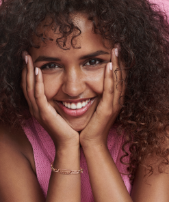 Special features: grooved lines follow the length of the shape and handwritten script font. Extra note: corresponds to the length of a double link or four small interlocking links; may be exchanged 1:1 to keep length of bracelet or necklace; can also be styled on earrings; functions between connectors for endless styling possibilities. Inspiration: amulet with a positive message to yourself; an inspirational and guiding reminder; adding your own meaning to your style; enjoying the ultimate level of personalization and freedom of styling for an individual. customized look.