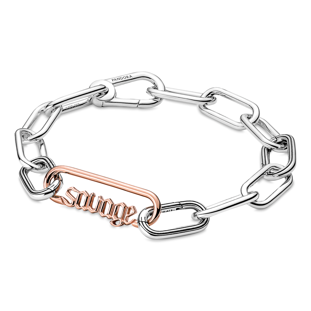 Special features: polished; gothic script font. Extra note: corresponds to the length of a double link or four small interlocking links; may be exchanged 1:1 to keep length of bracelet or necklace; can also be styled on earrings; functions between connectors for endless styling possibilities. Inspiration: gothic script font inspired by the punk music and fashion scene; adding your own meaning to your style; a positive reminder to yourself; the freedom to express yourself; enjoying the ultimate level of personalization and freedom of styling for an individual. customized look.