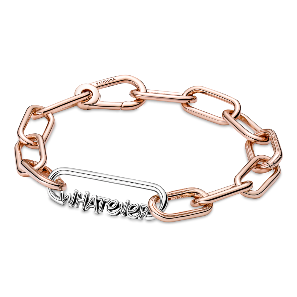 Special features: grooved lines follow the shape of the element and handwritten script font. Extra note: corresponds to the length of a double link or four small interlocking links; may be exchanged 1:1 to keep length of bracelet or necklace; can also be styled on earrings; functions between connectors for endless styling possibilities. Inspiration: adding your own meaning to your style; a reminder to stay true to yourself; enjoying the ultimate level of personalisation and freedom of styling for an individual. customised look.