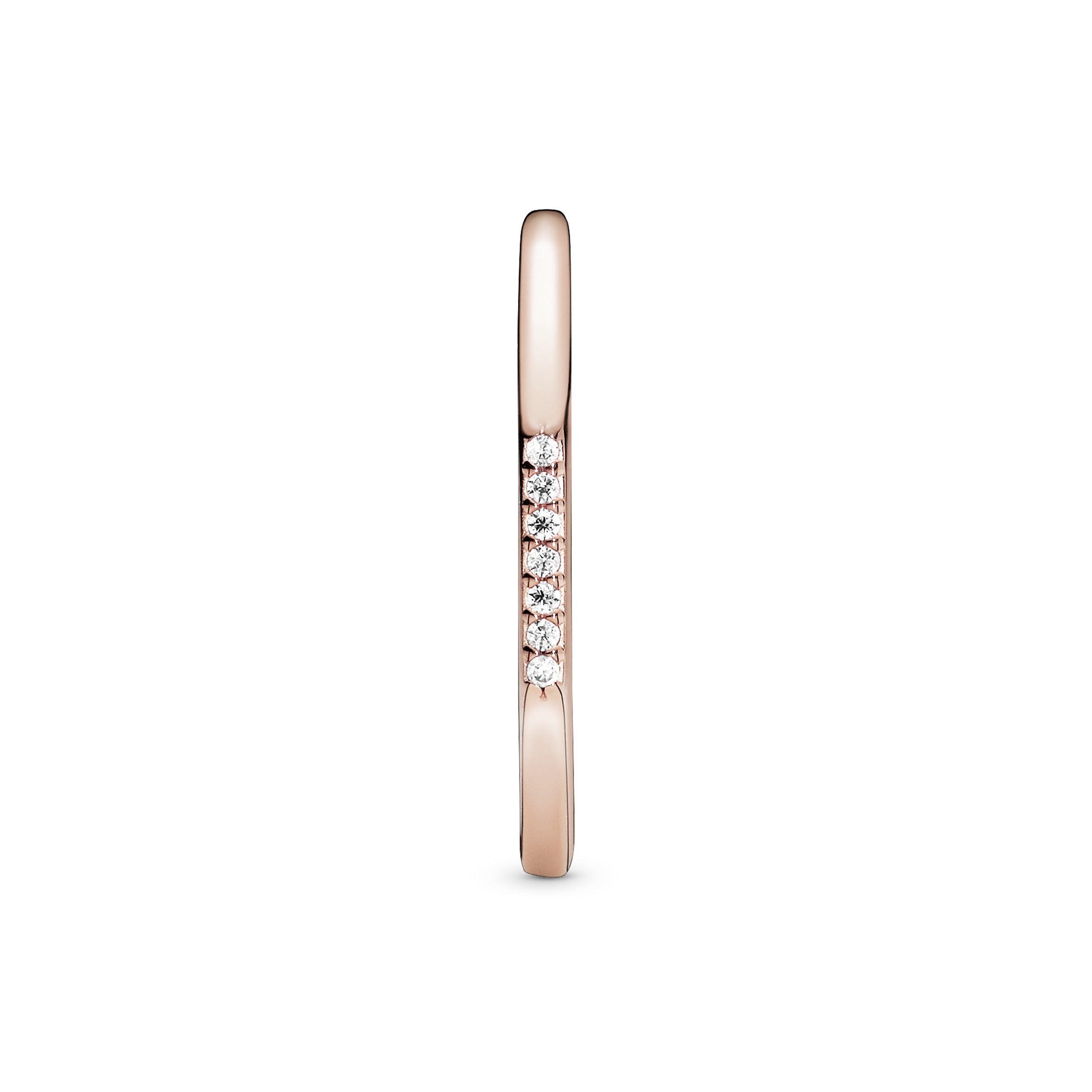Add a bit of industrial edge to your look with this Multifaceted Ring in Rose (14k rose gold-plated unique metal blend). Inspired by geometric shapes and modern minimalistic style. this ring stands out with five faceted angles on one half and a semi-circle on the other. Thin and elegant. it’s finished in polished metal and features a row of clear cubic zirconia on one facet. The stackable design makes it perfect for wearing alone or layering with other rings in mixed metals.