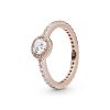 A style for now and always. this Rose halo ring is a timeless addition to any jewellery collection. Cast from 14k rose gold-plated sterling silver. the open circle is dusted with glittering cubic zirconia framed with beading and cut-out hearts for romantic edge. Wear it solo or stacked with similar pieces from the collection. It works with everything.