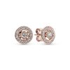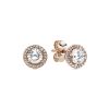 Equal parts cool and classic. this pair of Rose stud earrings is set with pavé-set cubic zirconia as a glittering contrast to the romantic rose-hued metal. Wear them as a pair. solo or stacked with other earrings you love. The butterfly earring backs are made from 14k rose gold-plated sterling silver.