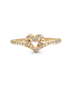 Surprise the one you love with our Sparkling Wishbone Heart Ring. Hand-finished in 14k gold plating. this piece is inspired by classic design elements. The heart detail has been incorporated into our iconic V-shape. creating a design ready to be adored. Clear cubic zirconia decorate the heart and top of the ring band. Present this style to someone special to show how much you care.