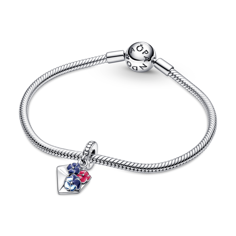 You’ve got mail. Our Pansy Flower Envelope Dangle Charm is the perfect way to send a message of love this spring. A sterling silver letter. complete with postage stamp and address lines. is filled with colourful. hand-painted pansies. The newest flower to grace our garden. pansies symbolise love in its many forms. Wear this charm as a reminder to reach out to all the loved ones in your life and tell them you’re thinking of them.