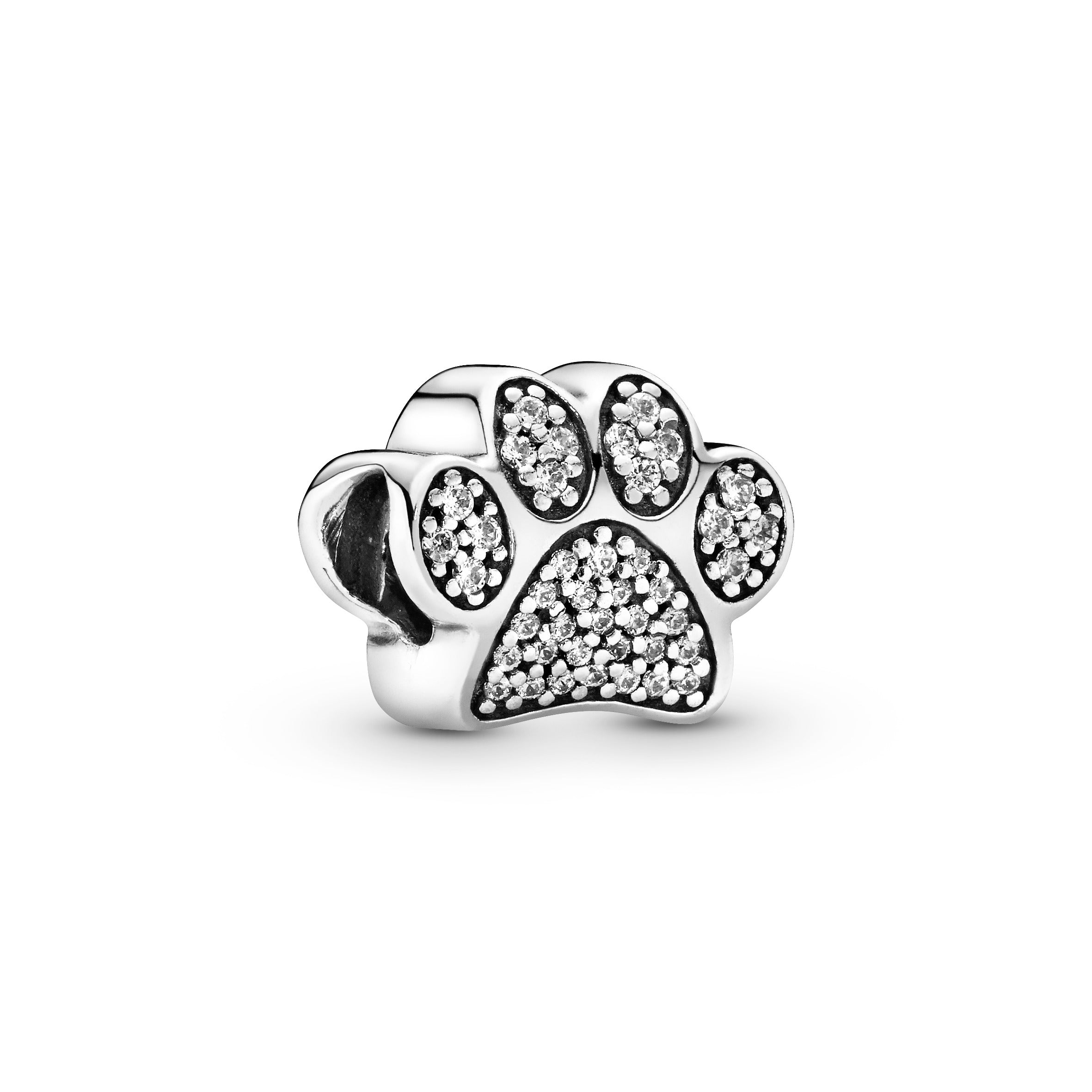 Celebrate your favourite four-legged friend with this paw print charm. Finely crafted in sterling silver. this adorable charm is embellished with sparkling cubic zirconia stones. A delightful gift for any cat or dog lover. it will add whimsical charm to your jewellery collection.