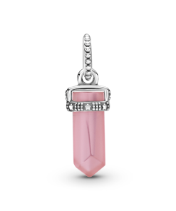 Tap into your inner magic with the Purple Amulet Pendant. Hand-finished in sterling silver. this design features a crystal-shaped frosted pink stone with a pointed edge. The stone is encircled by a girdle decorated with stars and microbeading features on the bail for added detail. Wear this pendant with a bracelet carrying charms that represent positive vibes and good fortune as a celebration of your unique power.