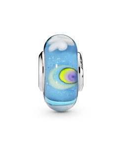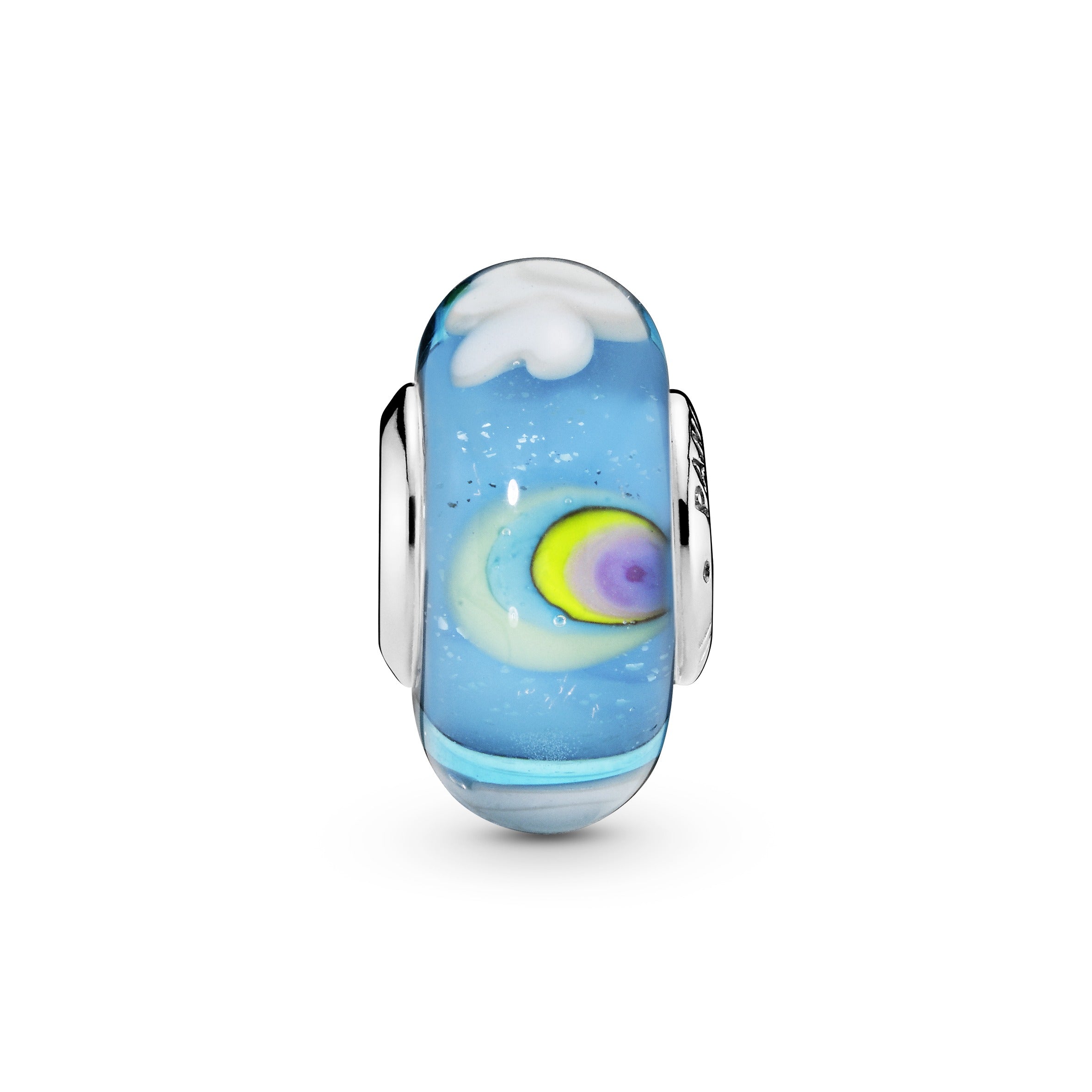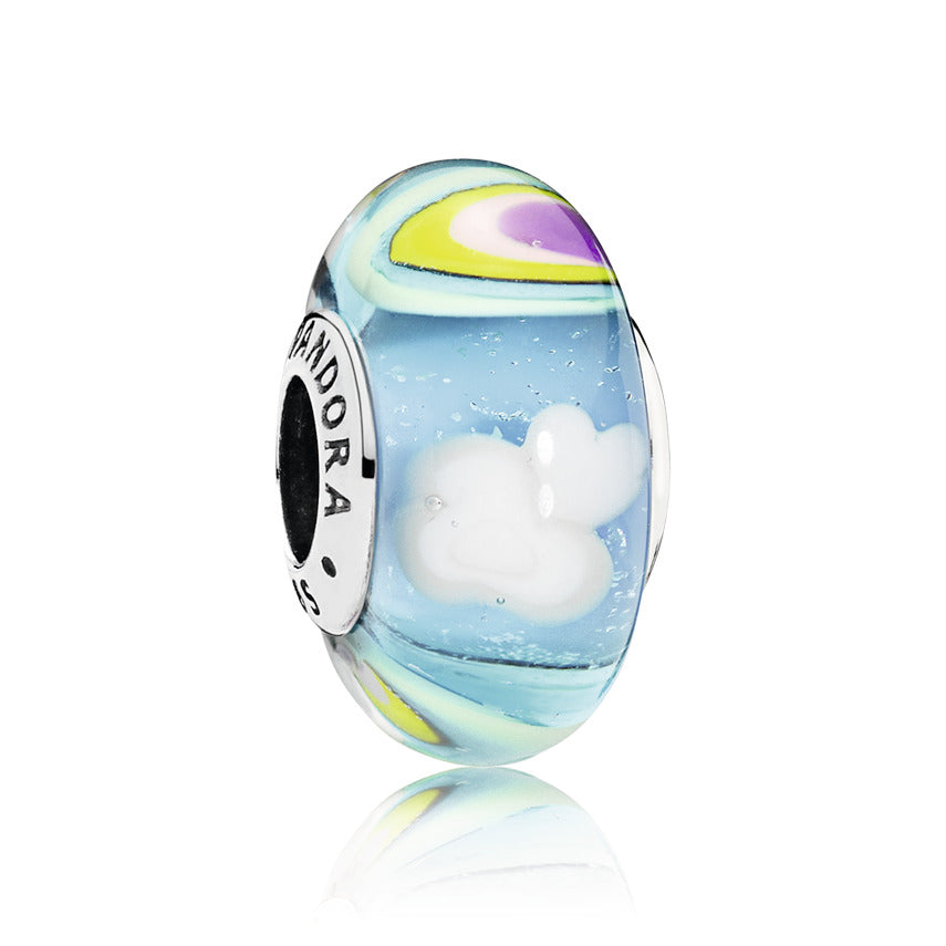 Dream your days away with our Murano glass charm that harnesses the power of your imagination. This multicoloured style is set on a sterling silver core and has been carefully crafted by hand. detailed with a unique landscape featuring a colourful rainbow and fluffy clouds. Wear it on a Moments bracelet to give it personal meaning.