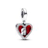 Heart and arrow sterling silver dangle with clear cubic zirconia and red Murano glass