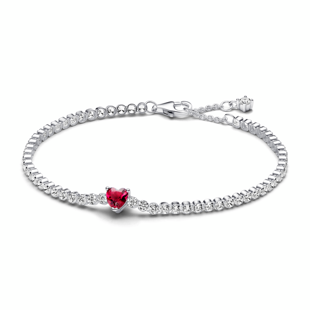 Heart sterling silver tennis bracelet with cherries jubilee red crystal and clear cubic zirconia
