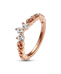 Add a touch of royalty to your everyday looks with our Regal Swirl Tiara Ring. Crafted with 14k rose gold plating. this aristocratic piece features a tiara decorated with three sparkling stones and swirling filigree. Crown your hand with this majestic ring and feel like a real queen.
