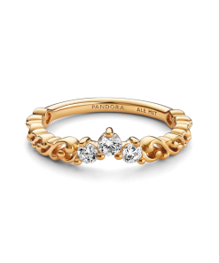 Add a touch of royalty to your everyday looks with the Regal Swirl Tiara Ring. Crafted with a 14k gold plating. this aristocratic piece features a tiara decorated with three sparkling stones and swirling filigree. Crown your hand with this majestic ring and feel like a real queen.