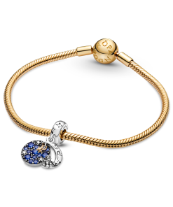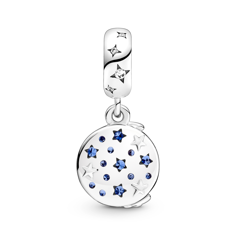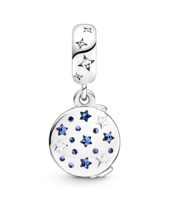 Capture the dream of Christmas with the Santa Claus On The Moon Double Dangle Charm. The design elegantly depicts Santa Claus sitting atop the moon. against a luminous night sky featuring raised stars. The dazzling double dangle charm also features rich blue stones and the engraving Merry Christmas to all. Santa Claus’s favourite saying as he flies across the world delivering presents and Christmas joy to children on Christmas Eve.