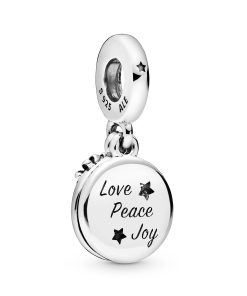 Carry the spirit and magic of Christmas with you wherever you go with this Santa Love Peace Joy Dangle Charm in sterling silver. It elegantly depicts a special scene from Santa’s Workshop. complete with a teddy bear. reindeer and everyone’s favourite – gifts! The beautiful double-dangle Christmas charm also features dazzling openwork stars. glittering burgundy red enamel and the lovely engraving Love Peace Joy as a reminder of all the special reasons for the season.