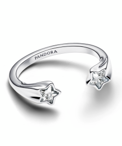Shooting star sterling silver open ring with clear cubic zirconia
