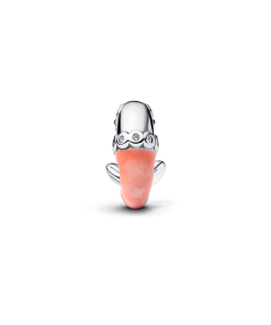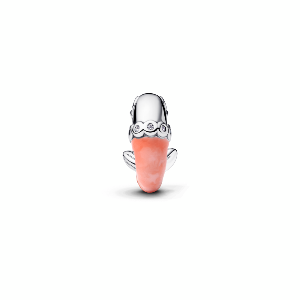 Shrimp sterling silver charm with clear cubic zirconia and pink enamel
