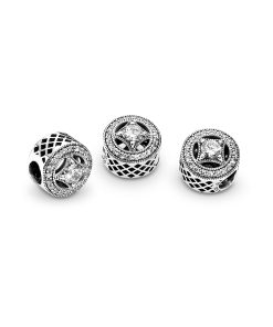 Capture the glamour and timeless appeal of heirloom jewellery with this sterling silver charm. It’s detailed with a geometric pattern of cubic zirconia stones and finished with milgrain detailing. The edge is decorated with harlequin cut-outs. Wear it on your Moments bracelet with other pieces that represent the things you love.