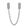 Add the finishing touches to your look with this simple. yet stylish sterling silver safety chain for charm bracelets. It makes sure your adornments stay put on your chosen Pandora Moments carrier. Embossed with our logo. the minimalist style is fitted with swivel ends to prevent the chain from tangling. To wear simply thread one side onto your bracelet before adding charms. connecting the unattached side of the safety chain once your charms are in place.