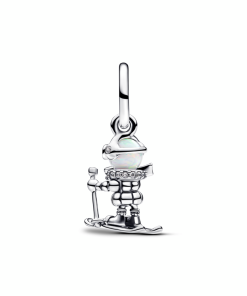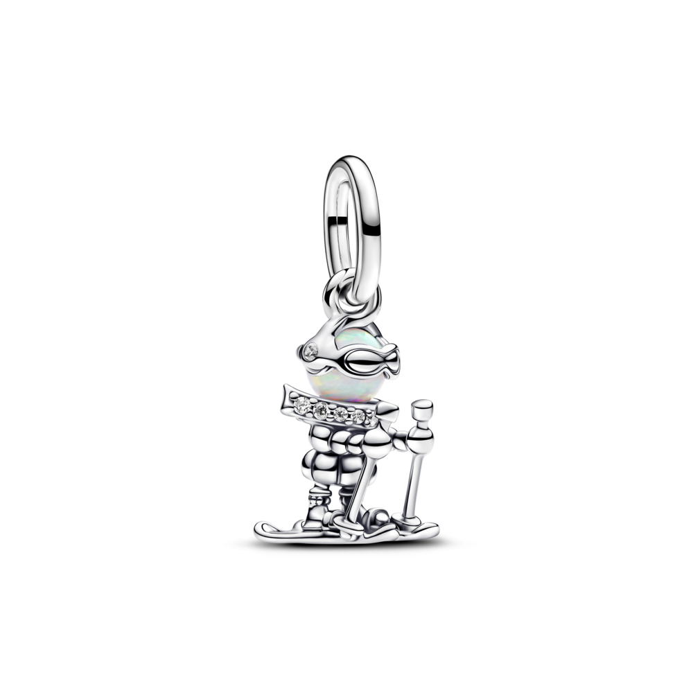 Skier sterling silver dangle with white lab-created opal and clear cubic zirconia