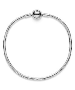 Start your very own Pandora story with this sleek snake chain bracelet in polished sterling silver. The perfect canvas for your creativity. this hand-finished bracelet can be styled in countless ways. Fill it with your desired charms and clips. wear it on its own for a simple. understated look. or stack it with contrasting bracelets for a fun play on textures. Only silicone-lined safety chain clips will fit this Moments bracelet.