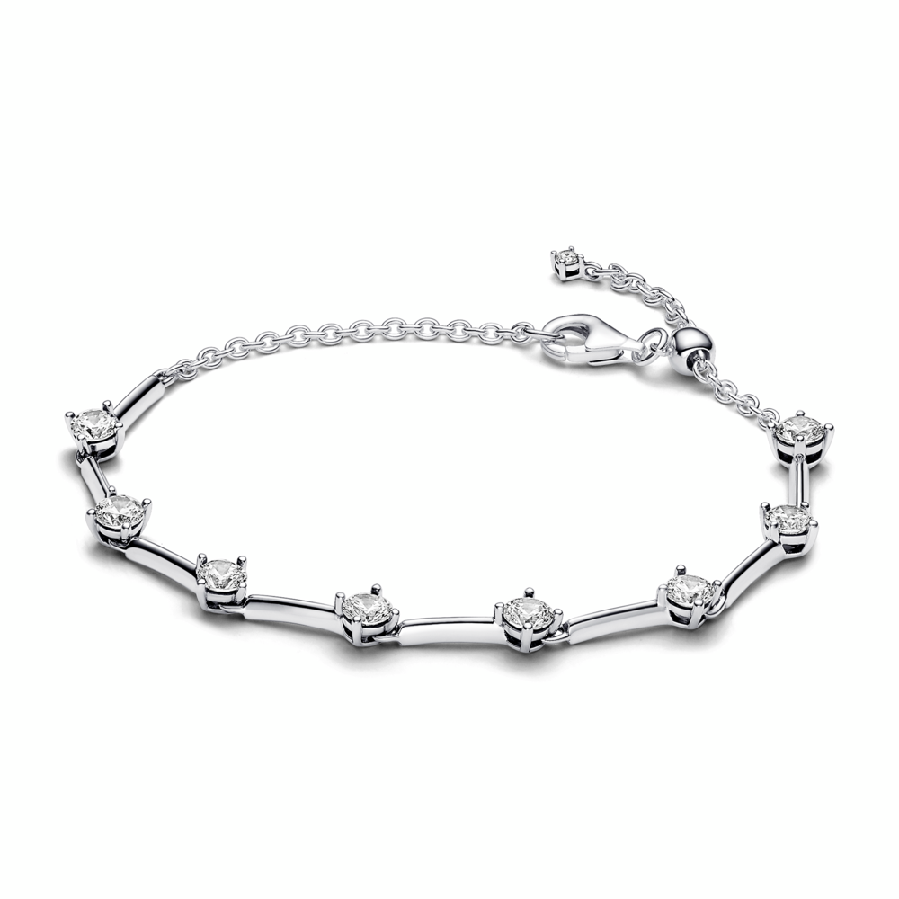 Sterling silver bracelet with clear cubic zirconia and sliding clasp