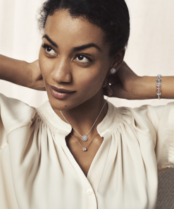 Elevate your every day look with the Sparkling Double Halo Collier Necklace. Hand-finished in sterling silver. this design includes a pendant featuring one big. raised central stone surrounded by two sparkling halos. The outer halo sits slightly lower than the inner halo. with space in between them to add depth to the design. This necklace includes a lobster clasp. which means its adjustable to two lengths. Style with other shimmering Pandora Timeless designs for an eye-catching combination with a classic finish.