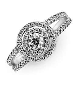 Give the gift of classic style with the Sparkling Double Halo Ring. Hand-finished in sterling silver. this shimmering piece is decorated with clear cubic zirconia. The statement centrepiece features one big. raised central stone surrounded by two sparkling halos. The outer halo sits slightly lower than the inner halo. with space in between them to add depth to the design. Treat your loved one to this ring and matching earrings for an eye-catching combination.
