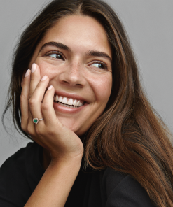 Add a sophisticated touch to your look with the Sparkling Elevated Heart Ring. The ring draws inspiration from the classic Pandora Timeless collection. Hand-finished in 14k rose gold unique metal blend. this piece features a green heart-shaped central. elevated stone. Clear cubic zirconia create the halo and decorate half of the ring band. with the Pandora logo inside the shank. Stack this ring with hand-finished styles in sterling silver for a statement mixed metal look.