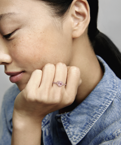 Add a sophisticated touch to your look with the Sparkling Elevated Heart Ring. The ring draws inspiration from the classic Pandora Timeless collection. Hand-finished in 14k rose gold unique metal blend. this piece features a pink heart-shaped central. elevated stone. Clear cubic zirconia create the halo and decorate half of the ring band. with the Pandora logo inside the shank. Stack this ring with hand-finished styles in sterling silver for a statement mixed metal look.