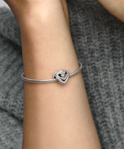 Gift a symbol of your love with the Sparkling Entwined Hearts Charm. Hand-finished in sterling silver. this design includes intertwining polished sterling silver hearts and sparkling stone-embellished hearts on the front and back. Entwined hearts also feature on the sides. Inspired by the famous love story of Romeo & Juliet. present this detailed openwork charm to someone special for Valentine’s Day.