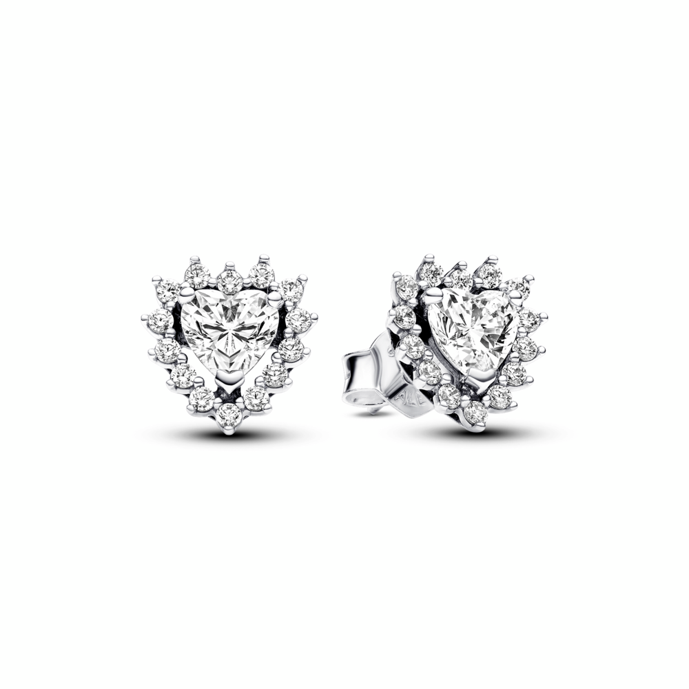 Sparkling Heart Halo Stud Earrings