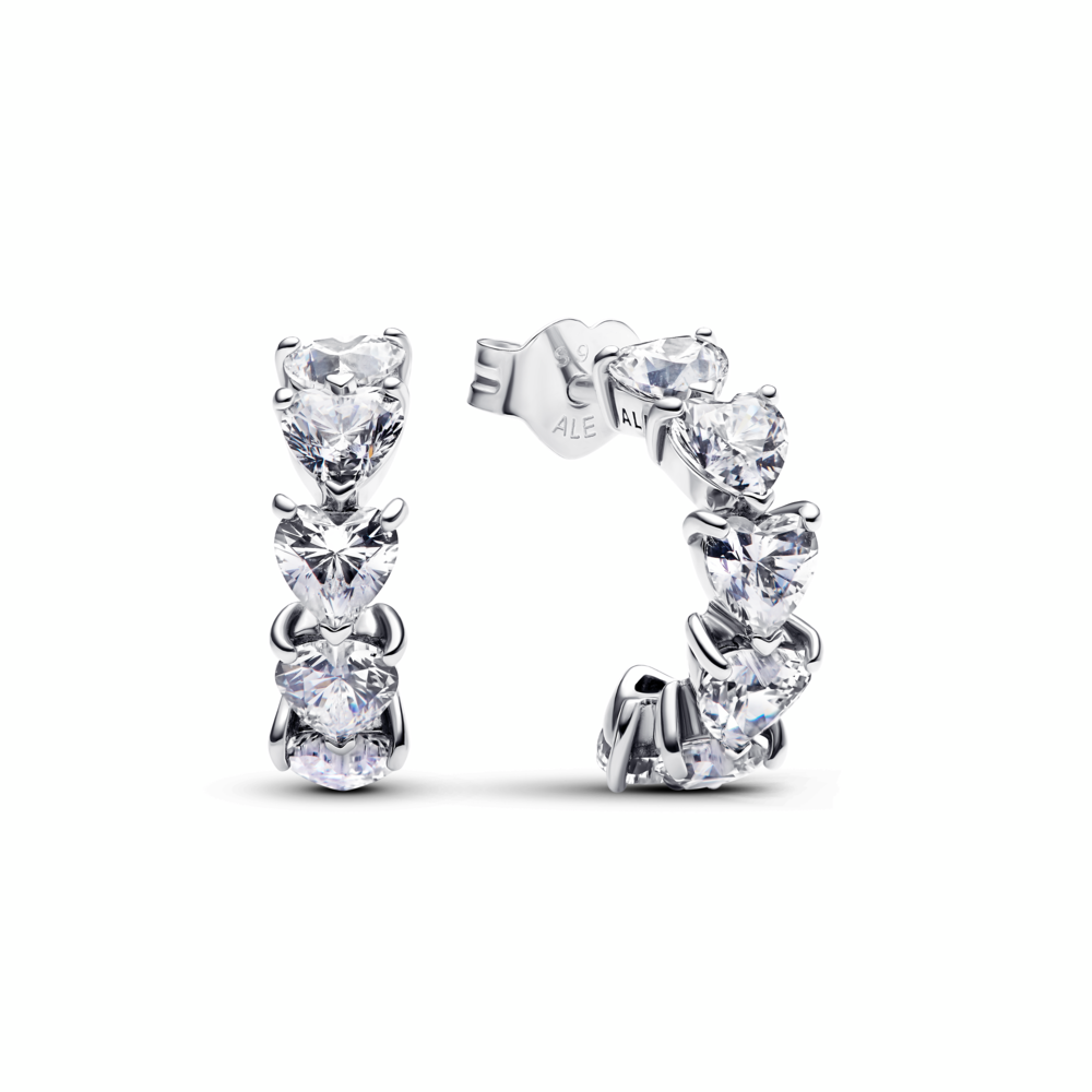 Hearts sterling silver hoop earrings with clear cubic zirconia