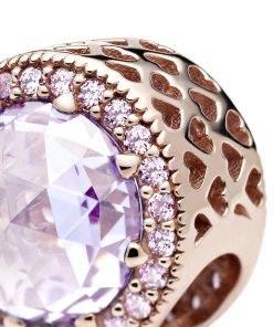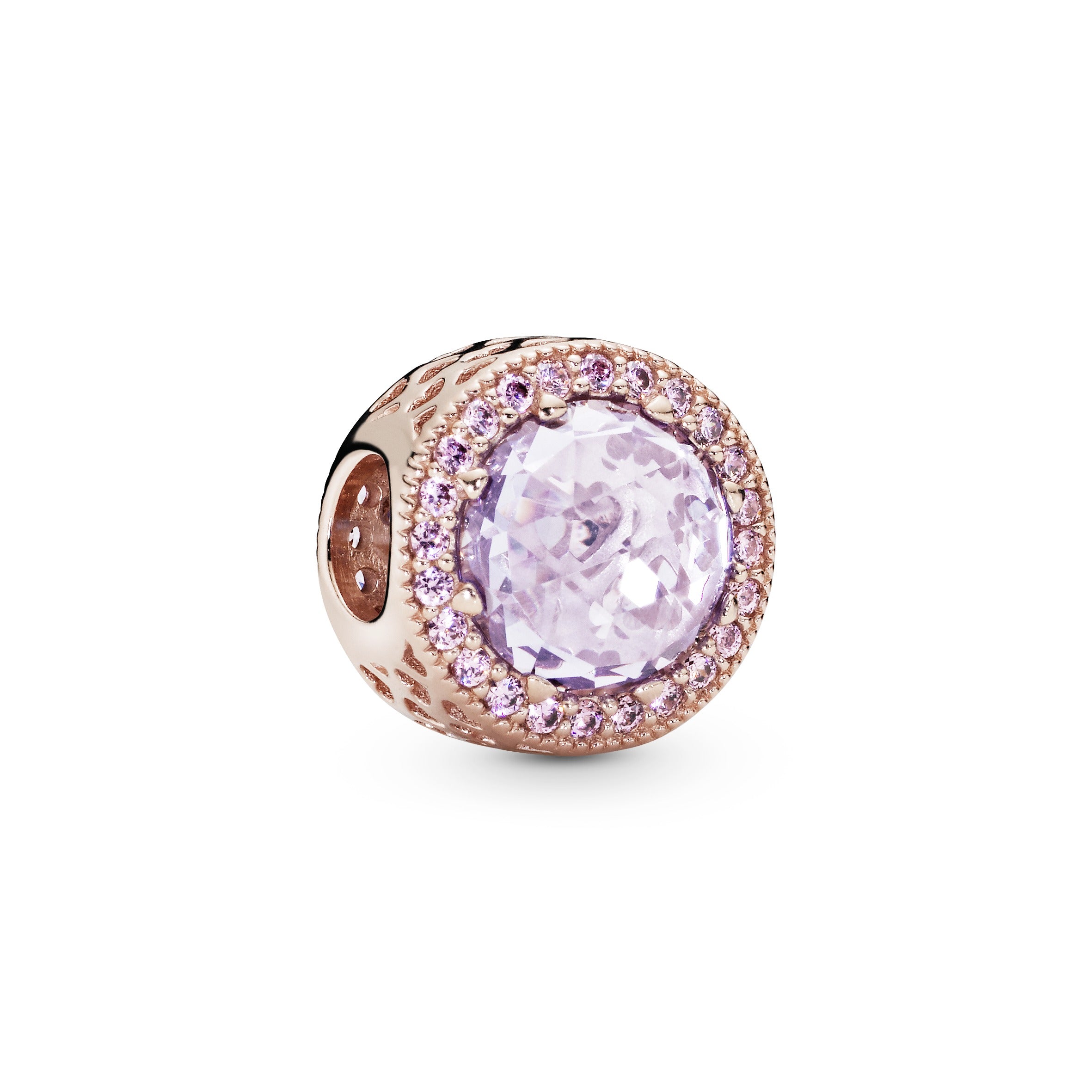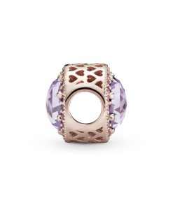 Make a bold statement with elegant edge with our Pandora Rose charm. made for Pandora Moments bracelets. Made from our unique metal blend plated with 14k rose gold. the blush-pink piece is accented with rose-cut centre stones for a feminine finish. The reversible style has cut-out hearts along the edge to underpin its romantic feel. Thread it on a favourite bracelet. as part of a personal styling or as a stunning centrepiece. to show your story.