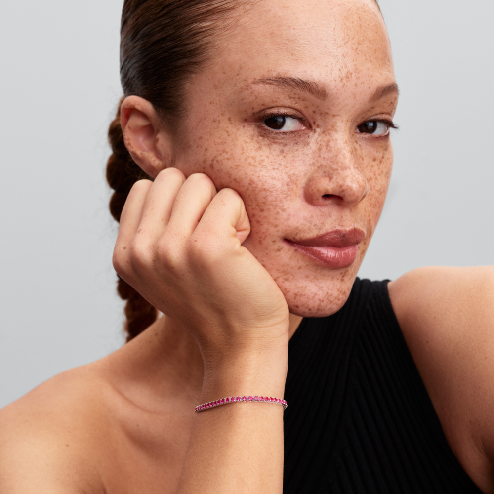 Sterling silver tennis bracelet with dark phlox pink crystal