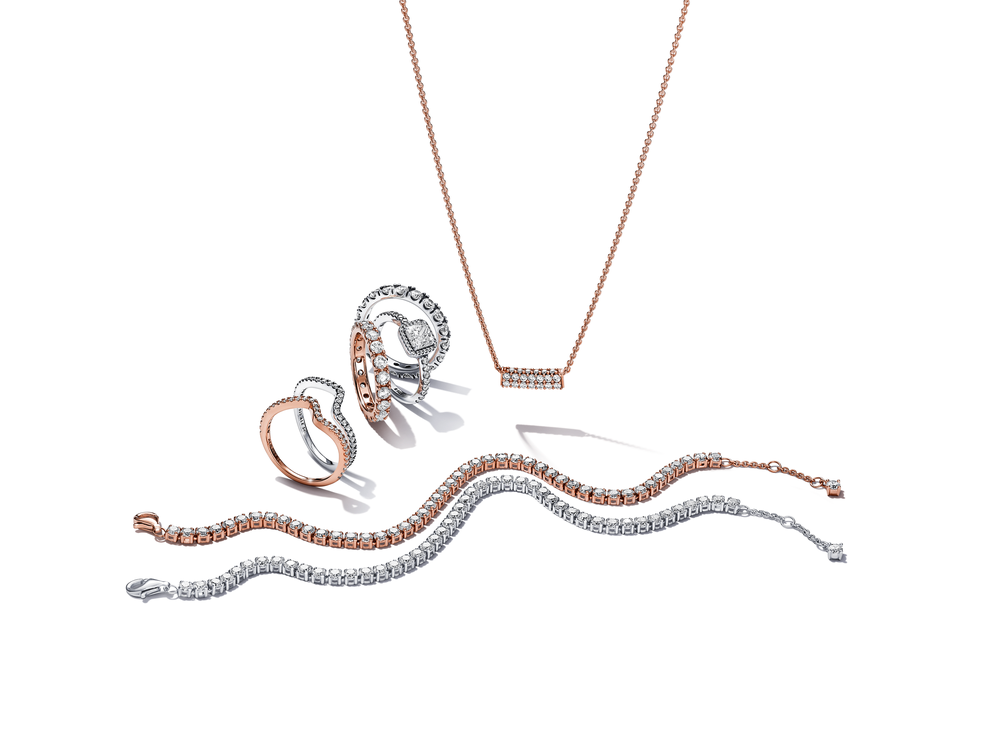 Metal: sterling silver Stone: 29 prong-set round brilliant-cut clear cubic zirconia