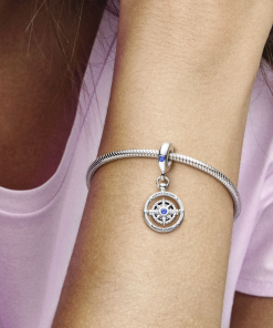 This Spinning Compass Dangle Charm will inspire you to trust your heart and choose your next adventure. Hand-finished in sterling silver. the charm is set with vibrant blue crystals and an engraving that reads Always follow your heart. With a spinning inner compass. this special dangle charm would make a perfect gift to point a loved one in the right direction. or a treat for yourself as a constant reminder to follow your own path.