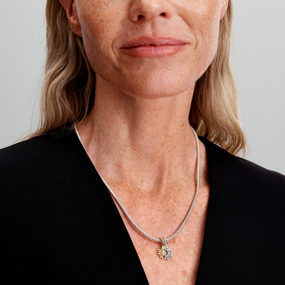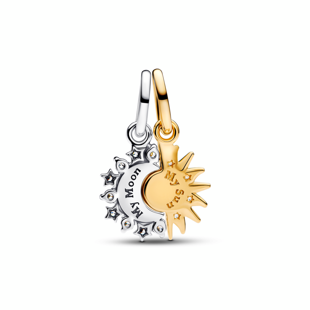 Sun and moon sterling silver and 14k gold-plated splittable dangle with clear cubic zirconia