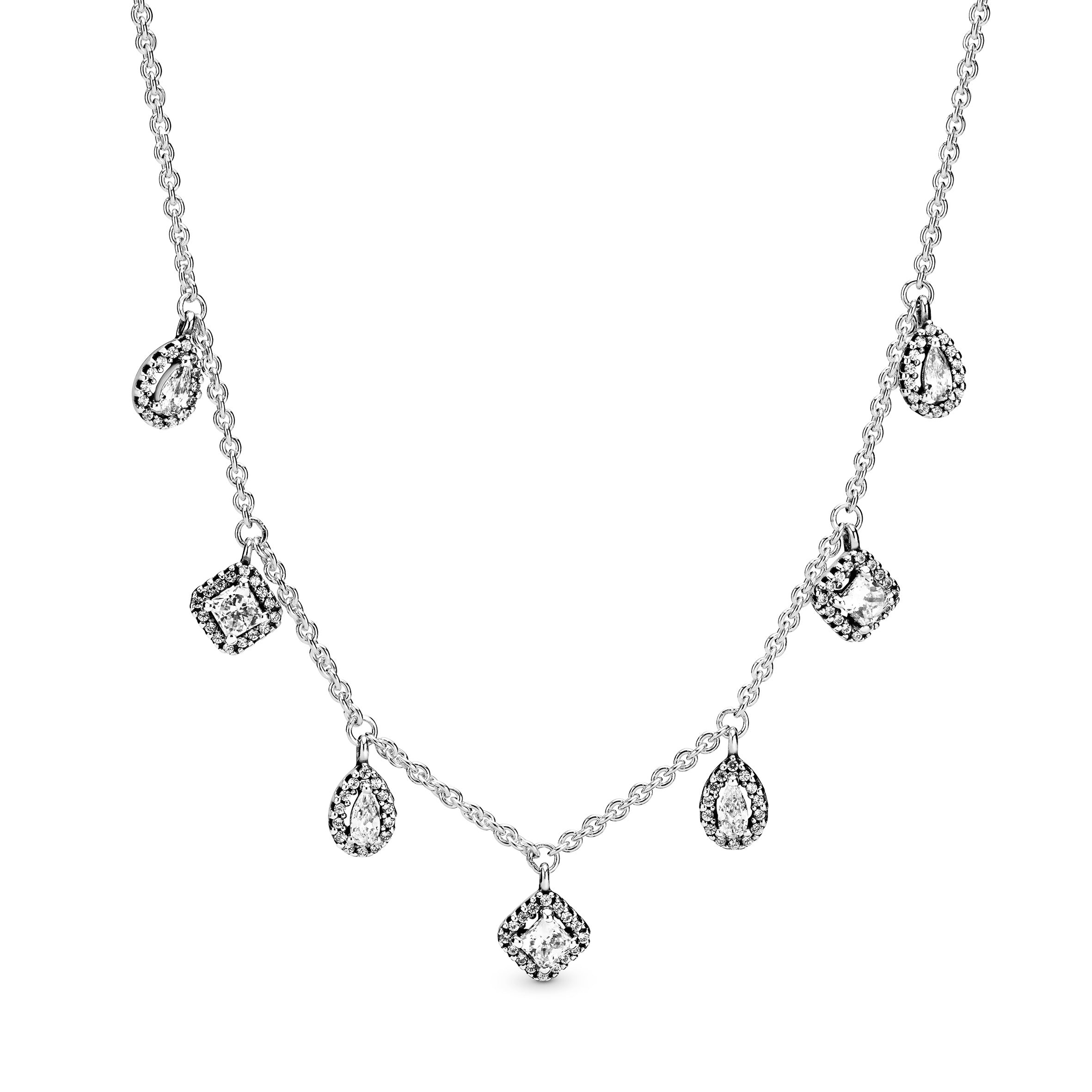 When your outfit calls for a special piece that will elevate the whole look and take it to the next level. the geometric collier necklace in sterling silver from the Timeless Elegance collection is the perfect choice. Created with alternating pear and square stone dangling shapes made from cubic zirconia. this necklace is a contemporary twist on a classic that will be a staple in your wardrobe for years to come. Featuring new elevated claw settings to allow for more sparkle and brilliance. it’s a true showstopper.