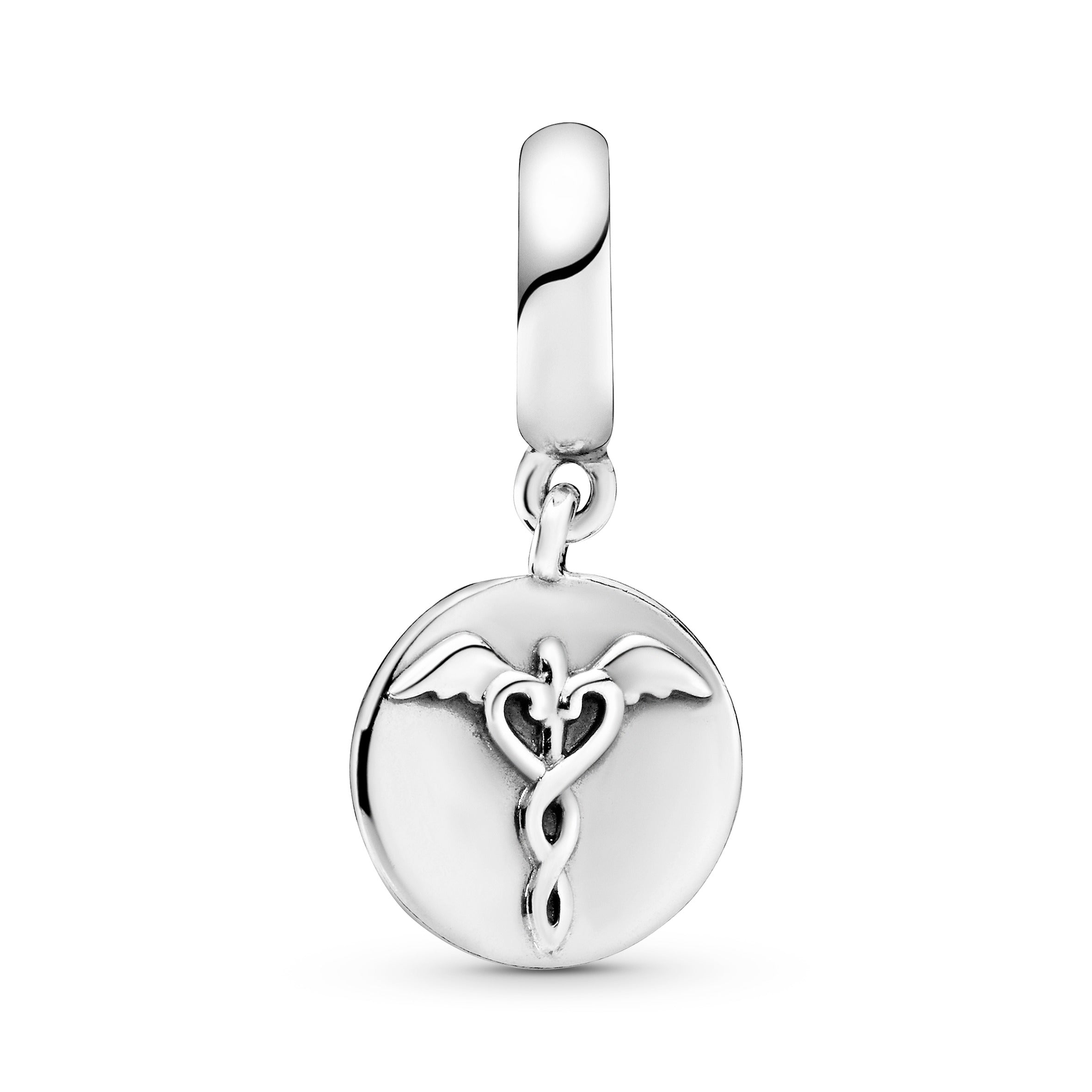 A charm for caregivers. to wear or share. this sterling silver disc charm is detailed with a stethoscope and nursing symbol as a symbol of the medical community. Embellished with cubic zirconia. the dangle is a thoughtful gift for someone you love—and who loves to take care of you—or a collectible for your Pandora Moments bracelet. to show a side to your story.