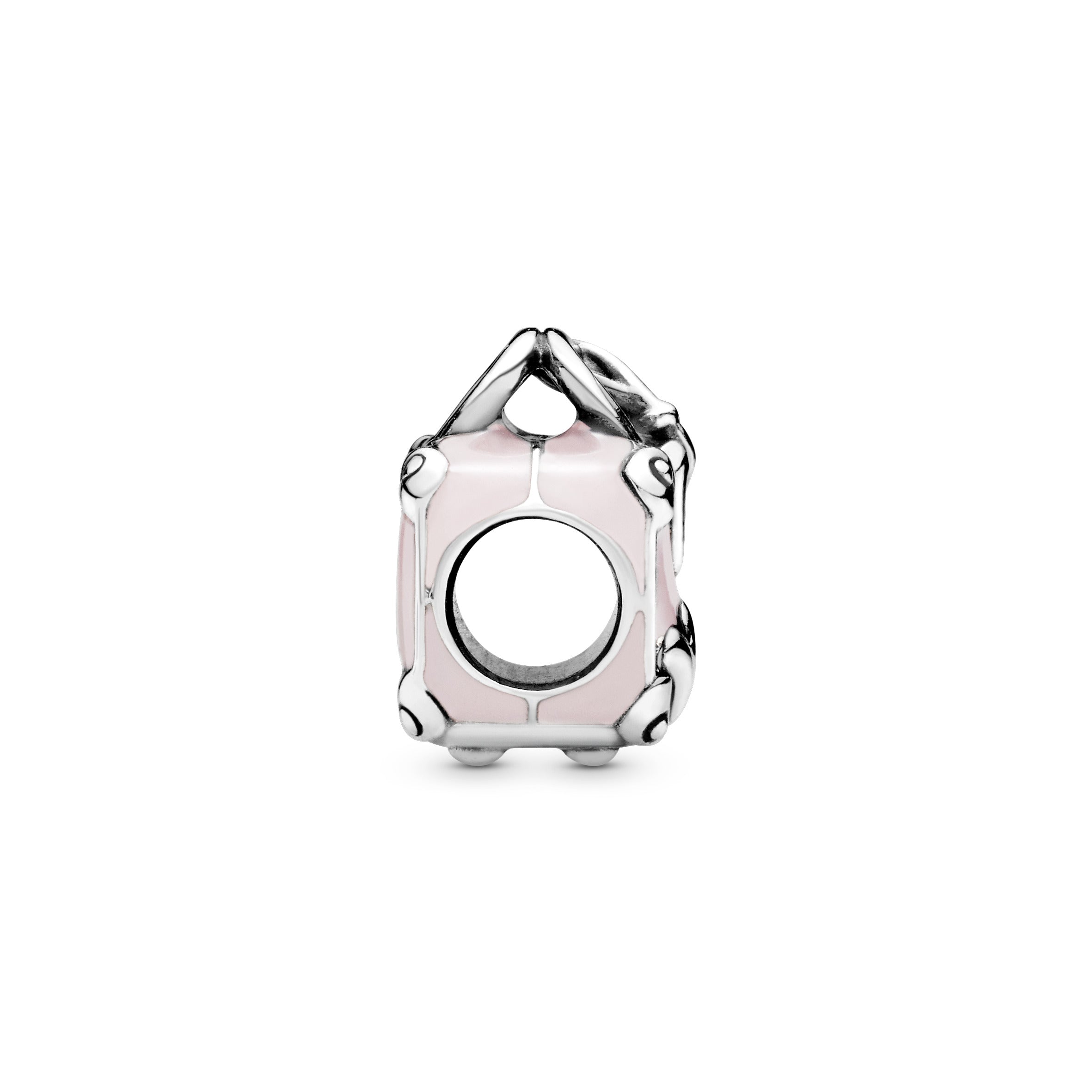 Pack your story on your favourite Pandora Moments bracelet together with this bag charm. Shaped as a suitcase detailed with pink enamel hearts. it’s detailed at the corners as well as on its luggage tag with the Pandora crown O monogram. The sterling silver charm is inscribed with the words Love travels. encouraging you to take it with you on your next style adventure on a bracelet or necklace pendant.