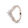 Turn heads wherever you go with this Tiara Wishbone ring hand-finished in Pandora Rose (14k rose gold-plated unique metal blend). The stackable wishbone ring features five claw-set clear cubic zirconia that form a delicate tiara crown on top of the ring. It’s perfect worn by itself or can be used to create more drama when stacked with wishbone rings in mixed metals. like sterling silver and 14k Gold Plated (18k gold-plated sterling silver). depending on the feeling you’re looking for.