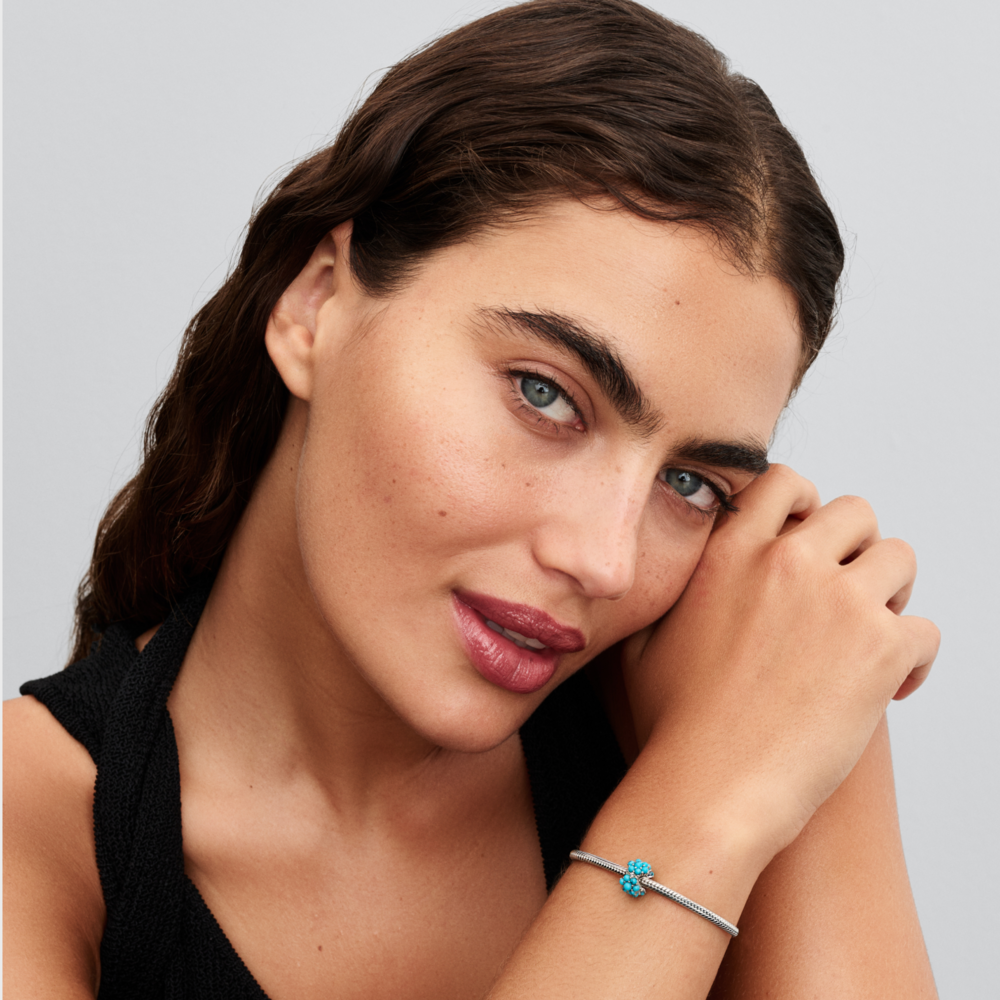 Sterling silver charm with clear cubic zirconia and imitation turquoise