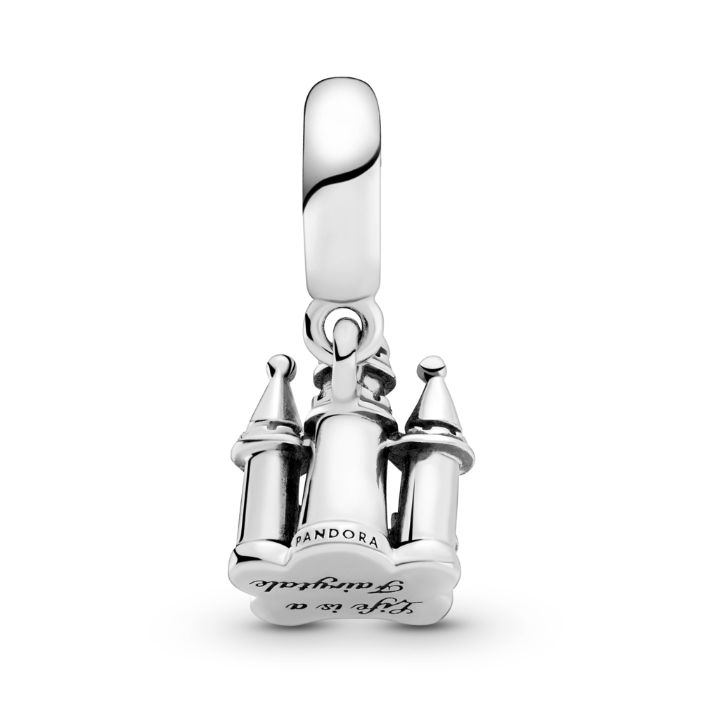 Bring a touch of magic to every day with the Two-tone Castle Dangle Charm. Hand-finished in sterling silver. this charm features a 14k gold heart on bail and the Pandora Monogram framed by a 3D castle with three turreted towers with lightly oxidised features and two battlements. On the bottom. there’s an engraving that reads ‘Life is a fairy tale.’ It’s a message you’ll never forget when you’re wearing this shining castle charm.