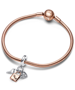 Two-tone Key. Padlock & Heart Triple Dangle Charm