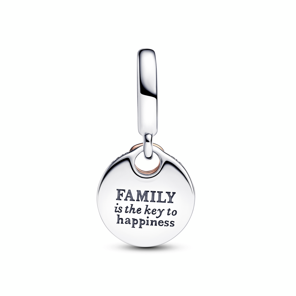 Key sterling silver and 14k rose gold-plated double dangle with clear cubic zirconia