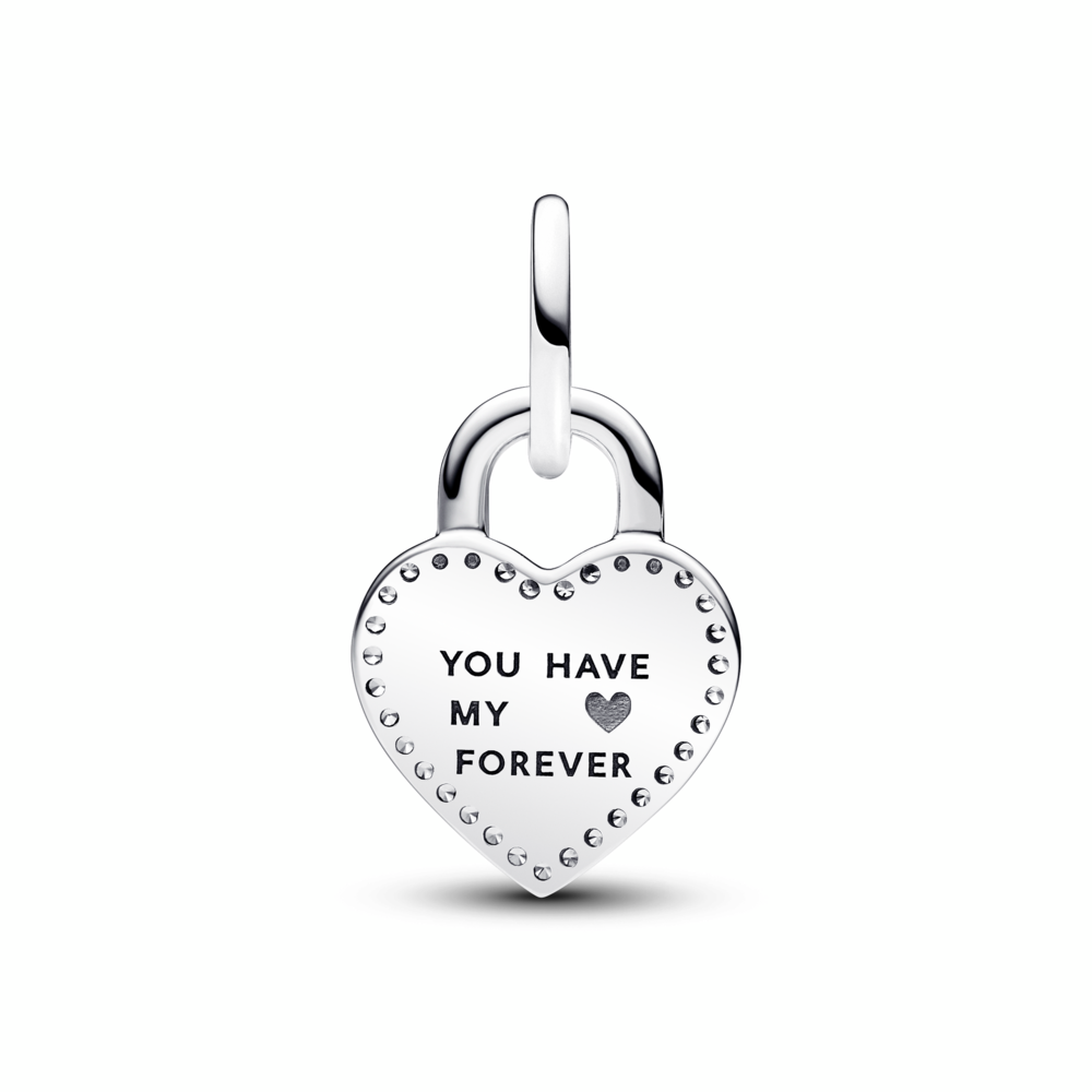 Padlock heart sterling silver and 14k rose gold-plated dangle with clear cubic zirconia