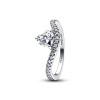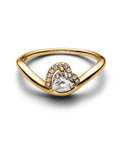 Wave heart 14k gold-plated ring with clear cubic zirconia